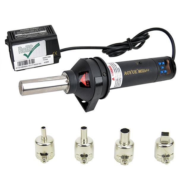This is manufactured by SRA Soldering Products. The manufacturer part number is AO8032A++. It is assigned with possible HTSUS value of 8515.90.4000. The product is rohs compliant. It features a power rating of 550w. It has a 1.2 cfm air flow rate. In addition, it is reach unaffected. The product is also supplied with heat gun, manual, nozzles, power cord. The product's typical temperature range incudes 212°f ~ 896°f (100°c ~ 480°c). The sra soldering products's product offers user-desired applications. This is basically a useful and handy heat gun. Its typical moisture sensitivity level is 1 (unlimited). It has a long 5 weeks standard lead time. The product is suitable for use with desoldering, soldering smt components. The splendid features of the product include lcd display, variable airflow and temperature controls. It has a classic black colour. The product aoyue®, is a highly preferred choice for users. In addition, box is the available packaging type of the product. It carries a 110v of voltage. Moreover, it corresponds to ao8032, a base product number of the product. The product is designated with the ear99 code number.
