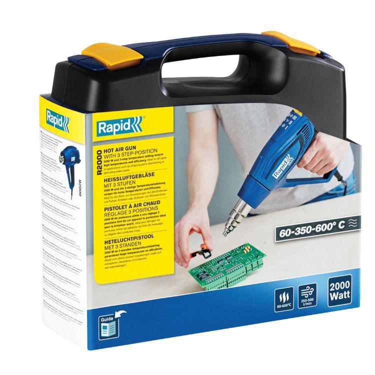 This is R2000 60 → 600°C max Cordless UK Plug manufactured by Rapid. The manufacturer part number is 5001405. The maximum airflow is round about 250 → 450l/min . Moreover, the product has a nominal 220 → 240v voltage rating. This product carries 2000w. The plug is a highly reliable uk plug with long service life. It has a model number r2000. Additionally, the product is cordless . It has a maximum operating temperature of 60 → 600°c.
