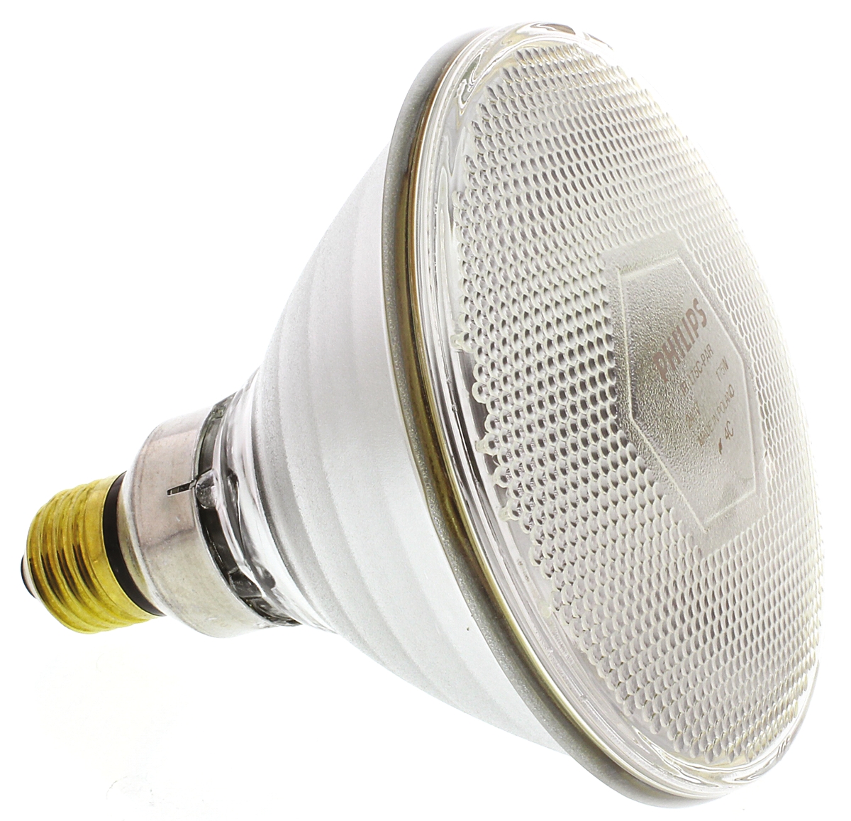 This is 2400K 128mm E27 Clear 136 mm 5000h PAR38 Heat Lamp 240/250 V 175 W manufactured by Philips Lighting. The manufacturer part number is IR175C. Its diameter is 128mm. Moreover, the product has a nominal 240/250 v voltage rating. This product carries 175 w. It has clear lamp finish . The lamp base is e27. Its accurate length is 136 mm. This integrates a colour temperature of 2400k. Adding to this, it has a long life span for about 5000h.