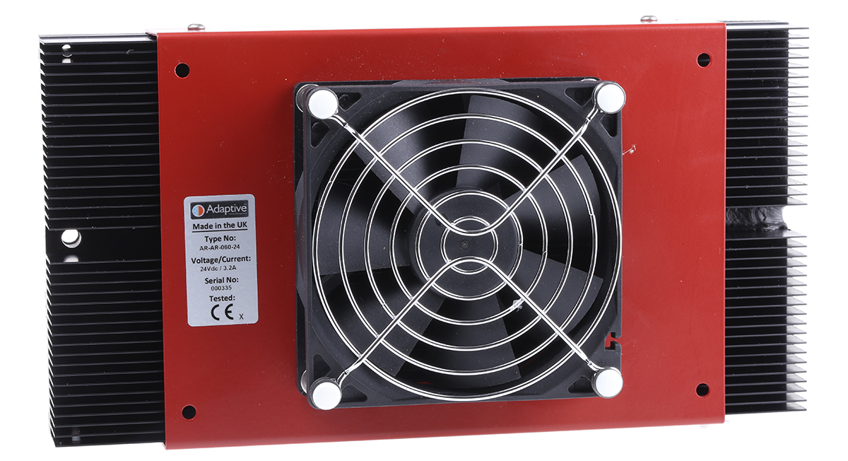 This is 24 V dc Air to Air Heat Pump 59.3W manufactured by Adaptive. The manufacturer part number is AR-AR-060-24. It has a maximum 59.3w cooling power . +51°c is the maximum ambient temperature of the product . Features 24 v dc supply voltage.