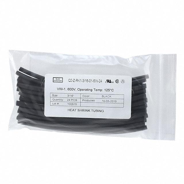 This is manufactured by Qualtek. The manufacturer part number is Q2-Z-RK1-3/16-01-6IN-24. Its diameter is 3/16". It is assigned with possible HTSUS value of 3926.90.9989. It has a classic black colour. The product q2-z, is a highly preferred choice for users. The product is rohs3 compliant. In addition, it is reach unaffected. The product has a shrinkage ratio of 2 to 1. In addition, refill pack is the available packaging type of the product. Values include - 24 pcs - 6" (152.4mm) lengths . Its typical moisture sensitivity level is not applicable. It has a long 23 weeks standard lead time. The qualtek's product offers user-desired applications. Moreover, it corresponds to q2-z-rk1-3/16, a base product number of the product. The product is designated with the ear99 code number.