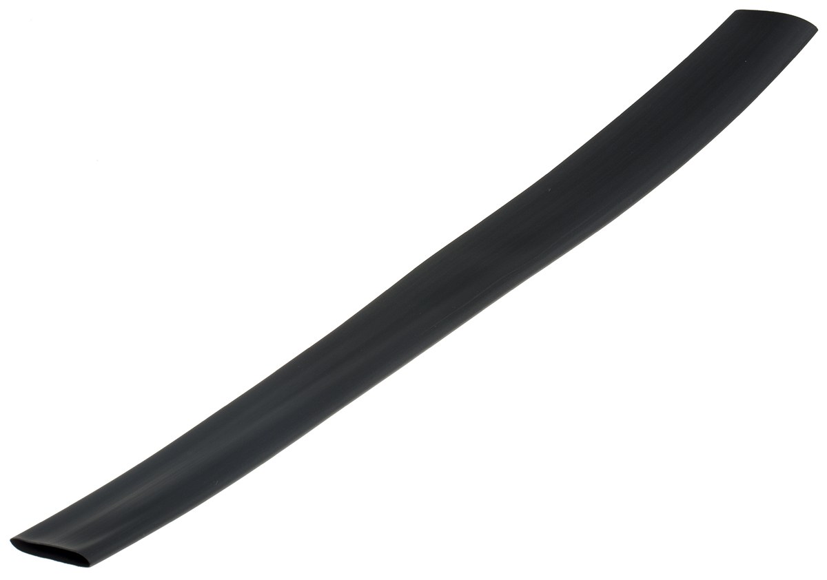 This is Black Heat Shrink Tubing 2:1 19.1mm Dia. x 30cm manufactured by RS Pro. The manufacturer part number is 417-7299. Its adhesive is lined no . The product complies with all safety standards, such as bs3g 198 part 3 11b, csa c22.2 no. 198.1, iec 60684-3-212 a&b, mil sae-ams-dtl 23053/5 class 1, rohs compliant, ul 224 vw-1 e48762, vg 95343 part 5 a&b. It has a 19.1mm diameter. The product has -55 → +135 °c of operating temperature range. It has a decent black colour. The product is made from highly stable and reliable polyolefin. It is halogen free no . This heat shrink sleeve offers extreme flexibility and suit various settings. It is flame retardant yes . Moreover, its overall shrunk diameter is 9.5mm . The sleeve has a 300mm length. Its shrink ratio is about 2:1 .
