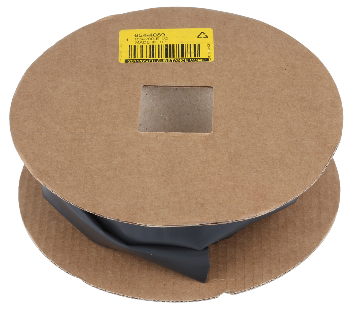 This is Black Heat Shrink Tubing 2:1 12.7mm Sleeve Dia. x 6m RW-200 Series manufactured by TE Connectivity. The manufacturer part number is RW-200-E-1/2-0. Its adhesive is lined no . It has a 12.7mm diameter. The product has -55 → +200 °c of operating temperature range. The product rw-200, is a highly preferred choice for users. It has a decent black colour. The product is made from highly stable and reliable viton cross linked fluoroelastomer. It is halogen free no . This heat shrink sleeve offers extreme flexibility and suit various settings. Its shrink ratio is about 2:1 . Moreover, its overall shrunk diameter is 6.4mm . The sleeve has a 6m length. It is flame retardant no .