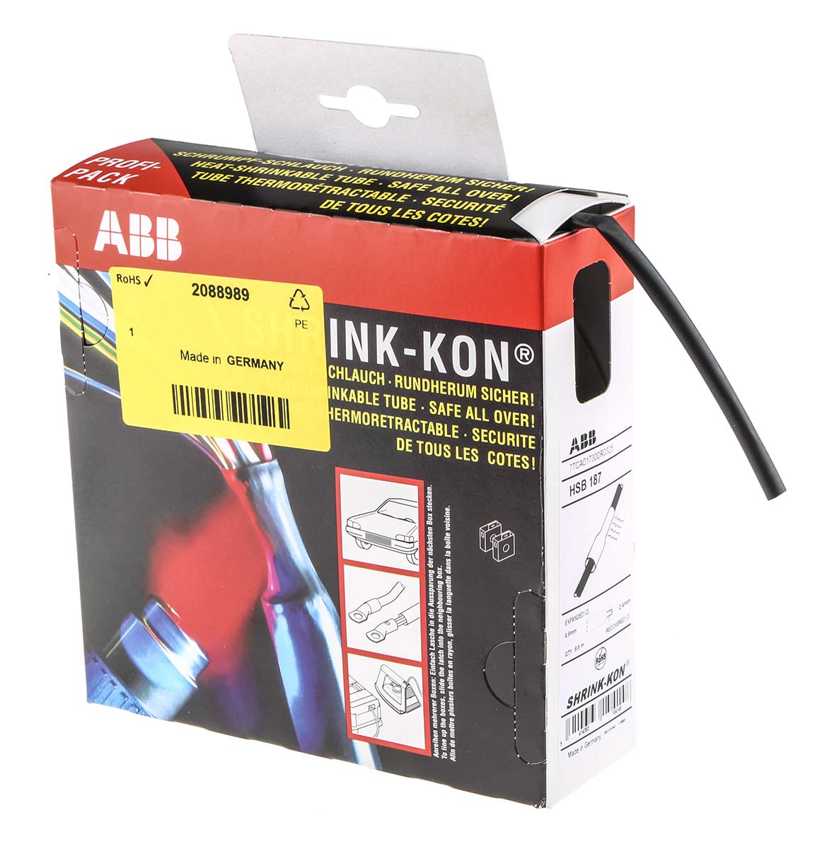 This is Black 2:1 Heat Shrink Tubing Kit 4.7mm Sleeve Dia. x 9.5m Length Shrink-Kon Series manufactured by Thomas & Betts. The manufacturer part number is HSB 187. Its adhesive is lined no . It has a 4.7mm diameter. The product has -55 → +125 °c of operating temperature range. The product hsb, is a highly preferred choice for users. It has a decent black colour. The product is made from highly stable and reliable cross linked polyolefin. This heat shrink sleeve offers extreme flexibility and suit various settings. Moreover, its overall shrunk diameter is 2.4mm . The sleeve has a 9.5m length. Its shrink ratio is about 2:1 . It is flame retardant yes .