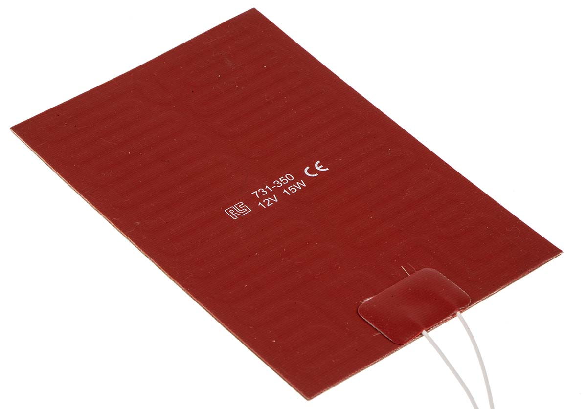 This is Silicone Heater Mat 15 W 100 x 150mm 12 V dc manufactured by RS Pro. The manufacturer part number is 731-350. It has +200°c of peak temperature . The given dimensions of the product include 100 x 150 mm. Moreover, it has a rectangle shape mat . Features 12 v dc supply voltage. Feature 15 w of power rating. It has a standard 100 x 150mm rectangular mat size .