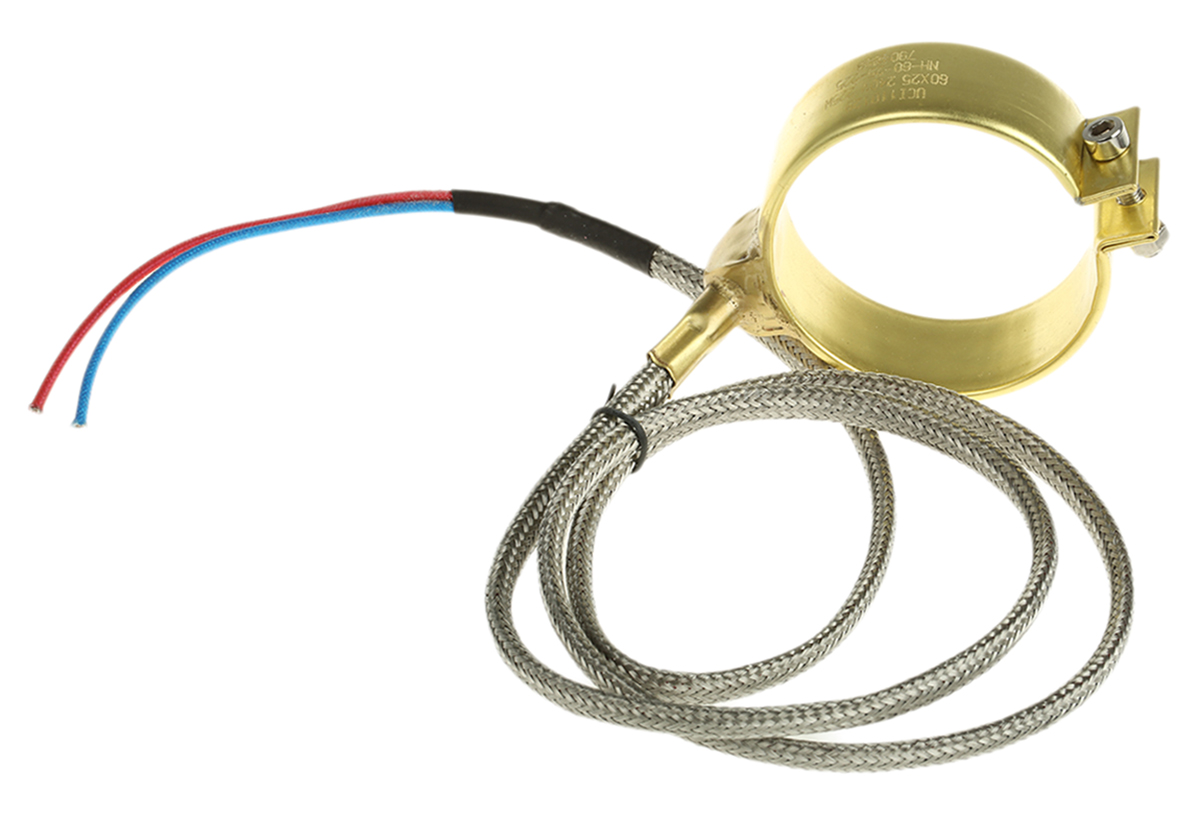 This is Mica Heater 60 (Dia.) x 25 mm 225 W manufactured by RS Pro. The manufacturer part number is 790-4858. Its diameter is 60 mm. It has +300°c of peak temperature . The lead is 1m long. The band heater is a standard product designed to suit various applications. Furthermore, the product is 25mm wide. Features 230 v ac supply voltage. Feature 225 w of power rating.