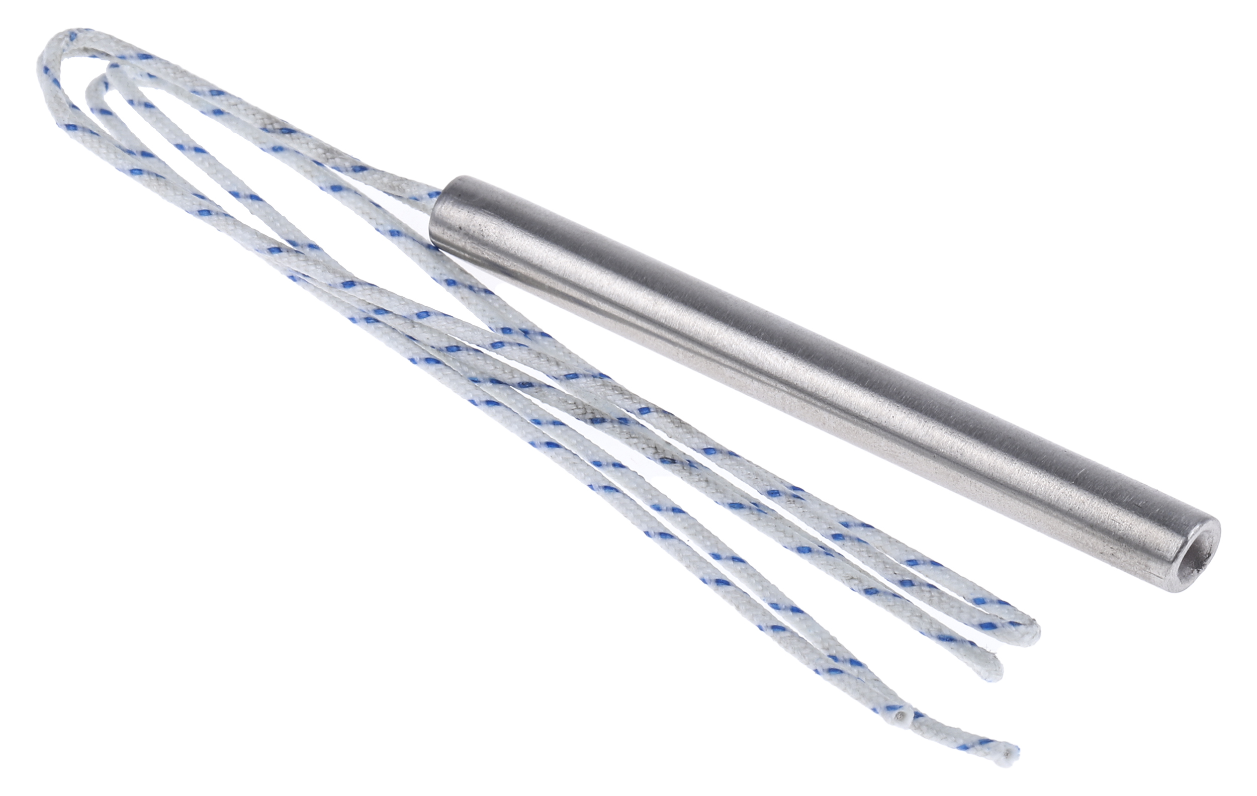 This is Cartridge Heater 1/4 in x 2.5in 75 W 220 V ac manufactured by RS Pro. The manufacturer part number is 860-6851. Its diameter is 1/4 in. The lead is 10in long. The cartridge heater is a standard product designed to suit various applications. Its accurate length is 2.5in. Features 220 v ac supply voltage. Feature 75 w of power rating.