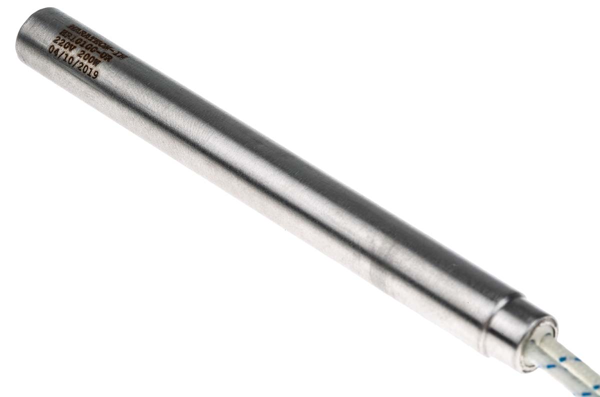 This is Cartridge Heater 10 mm x 100mm 200 W 220 V ac manufactured by RS Pro. The manufacturer part number is 860-6889. Its diameter is 10 mm. The lead is 10in long. The cartridge heater is a standard product designed to suit various applications. Its accurate length is 100mm. Features 220 v ac supply voltage. Feature 200 w of power rating.