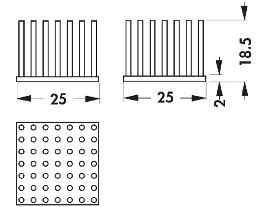 This is Heatsink PGA 5.2K/W 25 x 25 x 18.5mm Adhesive Foil Conductive Foil manufactured by Fischer Elektronik. The manufacturer part number is ICK S 25x25x18,5. The given dimensions of the product include 25 x 25 x 18.5mm. It is offered with an attractive adhesive foil, conductive foil mounting . Allows 5.2k/w thermal resistance. The product is made from highly stable and reliable aluminium. In addition, the height is 18.5mm. Furthermore, the product is 25mm wide. Its accurate length is 25mm. The product is highly suitable for universal square alu.