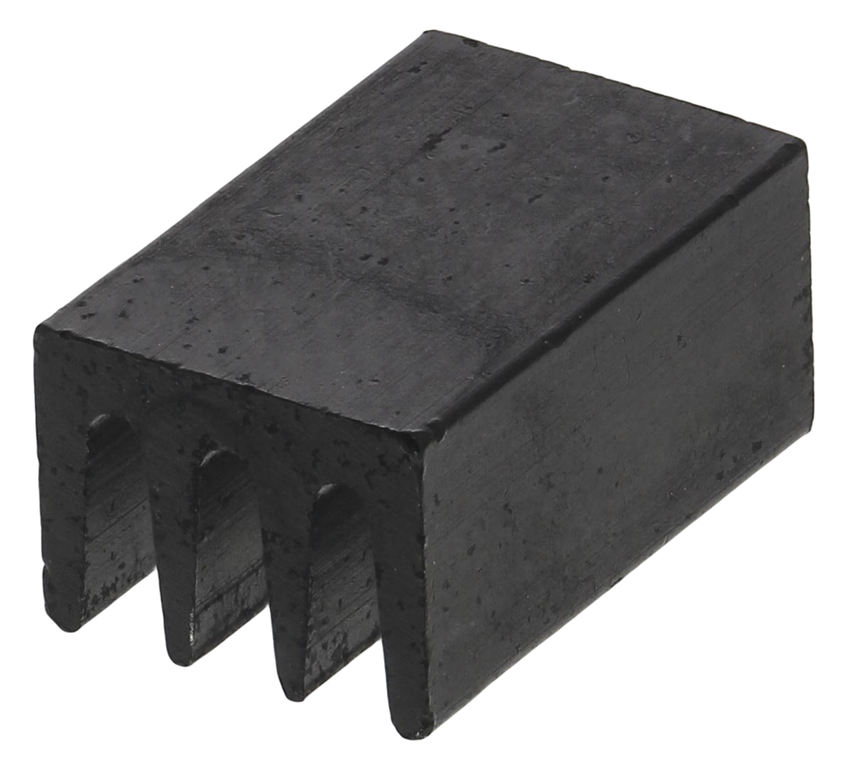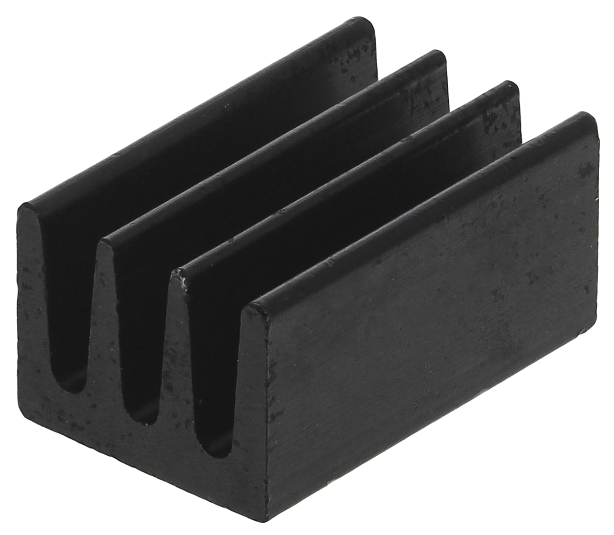 The heatsink absorbs and dissipates heat from electronic components through its aluminium body and conductive adhesive, lowering overall thermal buildup.