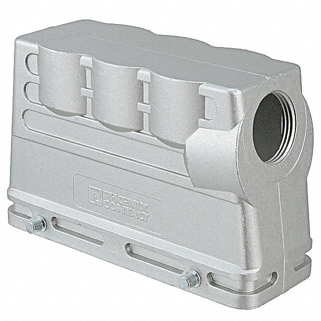 This is manufactured by Phoenix Contact. The manufacturer part number is 1642797. Additionally, the product is designed with side entry Style. It is assigned with possible HTSUS value of 8538.90.8180. The product is rohs compliant. It has a typical thread size of m25. The product has -40°c ~ 100°c operating temperature range. Its typical moisture sensitivity level is not applicable. The product's housing has finished with a rugged emc coating. It has an integral silver housing colour. The phoenix contact's product offers user-desired applications. hood Connector type offer robust functionality. The product's diameters include 4.724" l x 1.693" w x 2.992" h (120.00mm x 43.00mm x 76.00mm). The product also features robust aluminum, die cast housing material. It is IP rated with ip65 - dust tight, water resistant. The product heavycon® b, is a highly preferred choice for users. Lock Type & Location Information: locking clip (2) on base bottom. In addition, bulk is the available packaging type of the product. The product is available in b24 size. The product is designated with the ear99 code number.