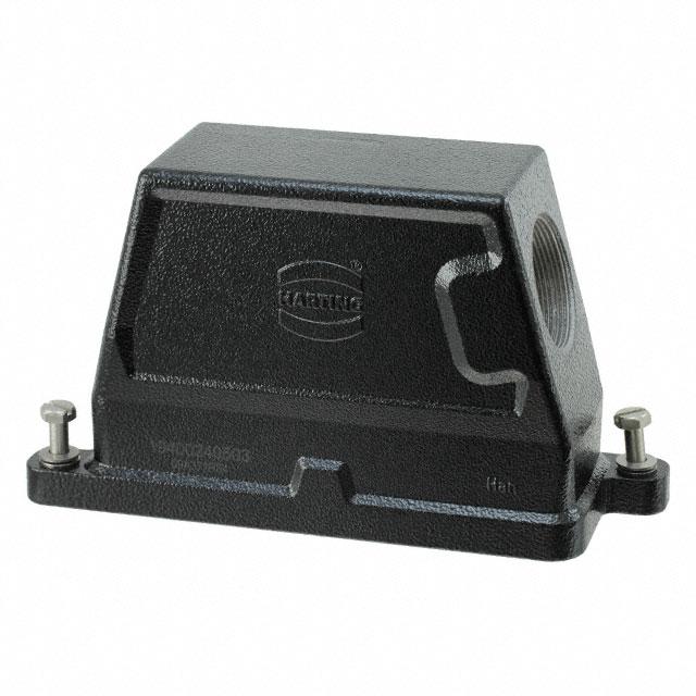 This is manufactured by HARTING. The manufacturer part number is 19400240503. Additionally, the product is designed with side entry Style. It is assigned with possible HTSUS value of 8538.90.8180. The product is rohs3 compliant. It has a typical thread size of m40. The product has -40°c ~ 125°c operating temperature range. Its typical moisture sensitivity level is 1 (unlimited). The product's housing has finished with a rugged powder coated. In addition, it is reach unaffected. It has an integral black housing colour. The harting's product offers user-desired applications. hood Connector type offer robust functionality. The product's diameters include 7.559" l x 2.283" w x 4.350" h (192.00mm x 58.00mm x 110.50mm). It has a long 14 weeks standard lead time. The product also features robust aluminum, die cast housing material. It is IP rated with ip65/ip68/ip69k - dust tight, water resistant, waterproof. The product han® hpr, is a highly preferred choice for users. Lock Type & Location Information: screw locks on hood. In addition, bulk is the available packaging type of the product. The product is available in 24b size. Moreover, it corresponds to 19400240, a base product number of the product. The product is designated with the ear99 code number.
