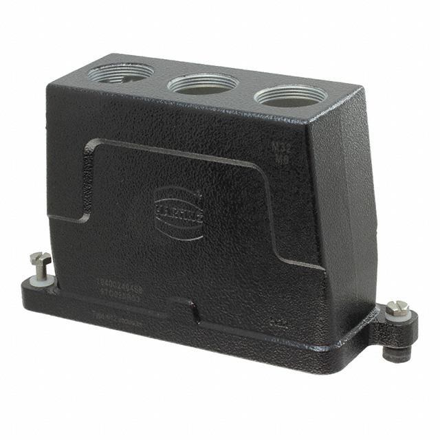 This is manufactured by HARTING. The manufacturer part number is 19400240468. Additionally, the product is designed with top entry, triple Style. It is assigned with possible HTSUS value of 8538.90.8180. The product is rohs3 compliant. It has a typical thread size of m32. The product has -40°c ~ 125°c operating temperature range. Its typical moisture sensitivity level is 1 (unlimited). The product's housing has finished with a rugged powder coated. In addition, it is reach unaffected. It has an integral black housing colour. The harting's product offers user-desired applications. hood Connector type offer robust functionality. The product's diameters include 7.559" l x 2.283" w x 4.724" h (192.00mm x 58.00mm x 120.00mm). It has a long 8 weeks standard lead time. The product also features robust aluminum, die cast housing material. It is IP rated with ip65/ip68/ip69k - dust tight, water resistant, waterproof. The product han® hpr, is a highly preferred choice for users. Lock Type & Location Information: screw locks on hood. In addition, bulk is the available packaging type of the product. The product is available in 24b size. Moreover, it corresponds to 19400240, a base product number of the product. The product is designated with the ear99 code number.