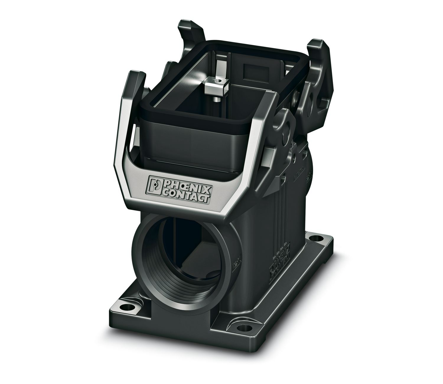 This is manufactured by Phoenix Contact. The manufacturer part number is 1421304. It has a typical thread size of m25. The product hc-evo, is a highly preferred choice for users. It comes in housing configuration. Additionally, the product is designed with side entry Style. It is assigned with possible HTSUS value of 8538.90.8180. The product has -40°c ~ 125°c operating temperature range. Its typical moisture sensitivity level is 1 (unlimited). It has an integral black housing colour. It is shipped in bulk package . base - box mount Connector type offer robust functionality. The product's diameters include 3.661" l x 2.244" w x 2.913" h (93.00mm x 57.00mm x 74.00mm). It has a long 4 weeks standard lead time. The product also features robust polyamide (pa), nylon housing material. It is IP rated with ip66 - dust tight, water resistant. The splendid features of the product include feed through. The product heavycon® b, is a highly preferred choice for users. Lock Type & Location Information: locking clip (2) on base bottom. The product is available in b10 size. The product is designated with the ear99 code number.