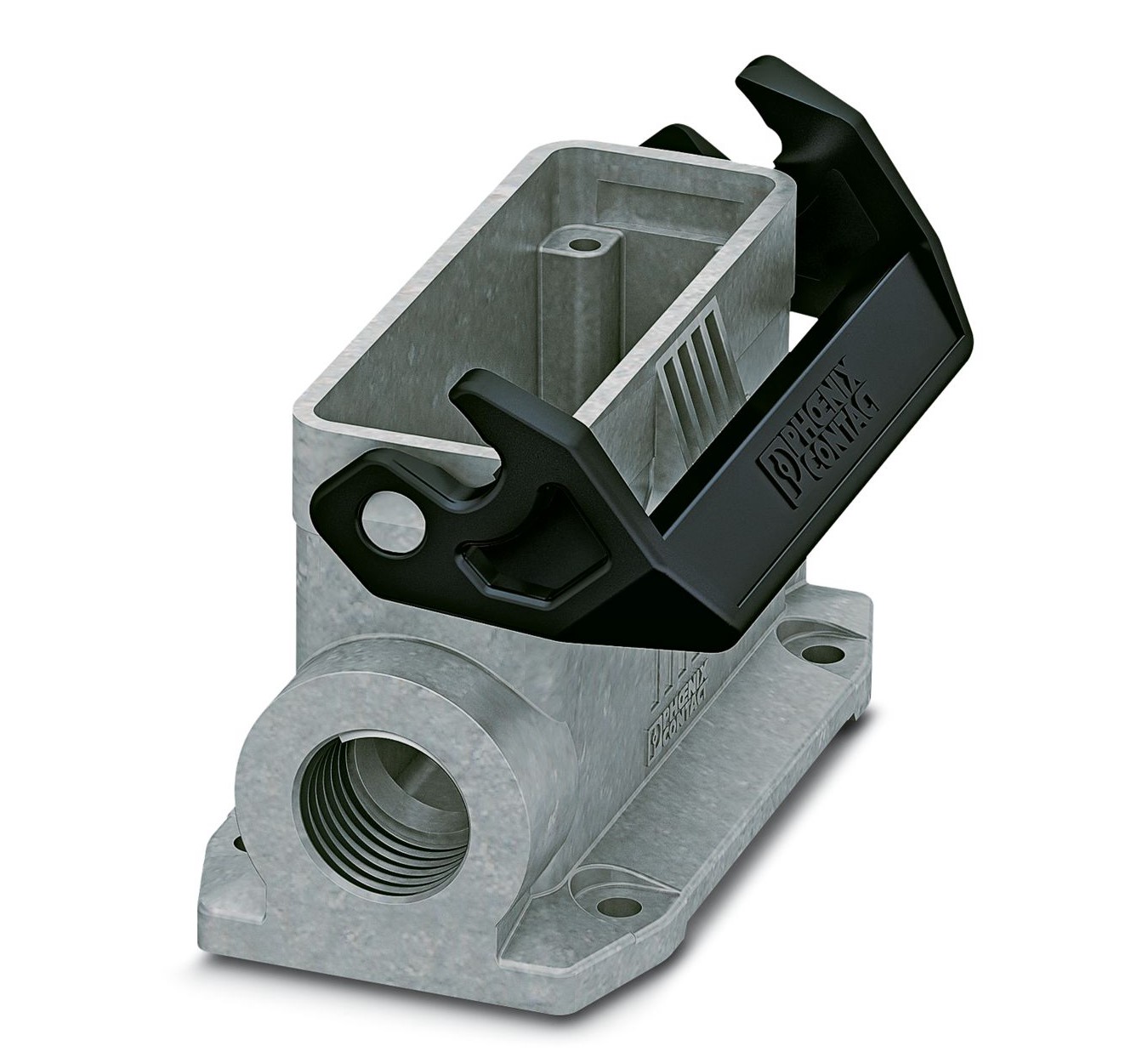 This is manufactured by Phoenix Contact. The manufacturer part number is 1424395. In addition, female is the available "Gender" of the product. Its cable entry is from side angle . It is a type of box mounting bases accessory. Additionally, the product is designed with side entry Style. It is assigned with possible HTSUS value of 8538.90.8180. It has a typical thread size of pg21. The product has -40°c ~ 125°c operating temperature range. Its typical moisture sensitivity level is not applicable. It has an integral gray housing colour. It is shipped in bulk package . base - box mount Connector type offer robust functionality. The product's diameters include 3.150" l x 2.008" w x 2.244" h (80.00mm x 51.00mm x 57.00mm). It has a long 4 weeks standard lead time. The product also features robust aluminum, die cast housing material. It is IP rated with ip66/ip67 - dust tight, water resistant, waterproof. The splendid features of the product include feed through, salt water resistant. The product heavycon® d, is a highly preferred choice for users. Lock Type & Location Information: locking clip (1) on base bottom. The product is available in d25 size. The product is designated with the ear99 code number.