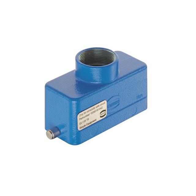 This is manufactured by HARTING. The manufacturer part number is 19360161442. Additionally, the product is designed with top entry Style. It is assigned with possible HTSUS value of 8538.90.8180. The product is rohs3 compliant. It has a typical thread size of m32. The product has -20°c ~ 40°c operating temperature range. Its typical moisture sensitivity level is not applicable. The product's housing has finished with a rugged powder coated. In addition, it is reach unaffected. It has an integral blue housing colour. It is shipped in bulk package . hood Connector type offer robust functionality. The product's diameters include 3.681" l x 1.693" w x 1.772" h (93.50mm x 43.00mm x 45.00mm). It has a long 11 weeks standard lead time. The product also features robust zinc, die cast housing material. It is IP rated with ip65 - dust tight, water resistant. The product han® ex, is a highly preferred choice for users. Lock Type & Location Information: locking clip (1) on base bottom. The product is available in 16b size. Moreover, it corresponds to 19360161, a base product number of the product. The product is designated with the ear99 code number.