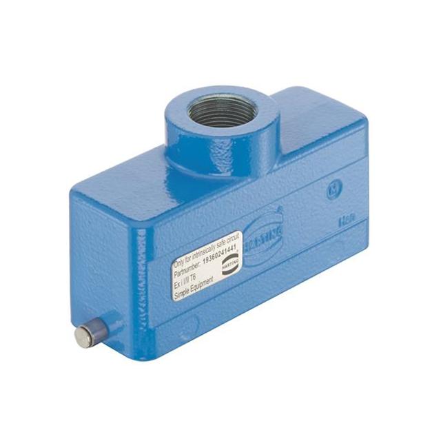 This is manufactured by HARTING. The manufacturer part number is 19360241441. Additionally, the product is designed with top entry Style. It is assigned with possible HTSUS value of 8538.90.8180. The product is rohs3 compliant. It has a typical thread size of m25. The product has -20°c ~ 40°c operating temperature range. Its typical moisture sensitivity level is not applicable. The product's housing has finished with a rugged powder coated. In addition, it is reach unaffected. It has an integral blue housing colour. The harting's product offers user-desired applications. hood Connector type offer robust functionality. The product's diameters include 4.724" l x 1.693" w x 2.165" h (120.00mm x 43.00mm x 55.00mm). It has a long 11 weeks standard lead time. The product also features robust zinc, die cast housing material. It is IP rated with ip65 - dust tight, water resistant. The product han® ex, is a highly preferred choice for users. Lock Type & Location Information: locking clip (1) on base bottom. In addition, bulk is the available packaging type of the product. The product is available in 24b size. Moreover, it corresponds to 19360241, a base product number of the product. The product is designated with the ear99 code number.