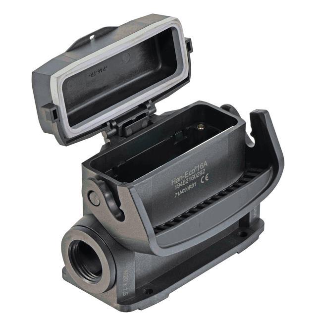 This is manufactured by HARTING. The manufacturer part number is 19462160292. Additionally, the product is designed with side entry Style. It is assigned with possible HTSUS value of 8538.90.8180. The product is rohs3 compliant. It has a typical thread size of m20. The product has -40°c ~ 125°c operating temperature range. Its typical moisture sensitivity level is not applicable. In addition, it is reach unaffected. It has an integral black housing colour. The harting's product offers user-desired applications. base - box mount Connector type offer robust functionality. The product also features robust polyamide (pa), nylon housing material. It is IP rated with ip65 - dust tight, water resistant. The splendid features of the product include cover. The product han-eco®, is a highly preferred choice for users. Lock Type & Location Information: locking clip (1) on base bottom. In addition, bulk is the available packaging type of the product. The product is available in a16 size. Moreover, it corresponds to 19462160, a base product number of the product. The product is designated with the ear99 code number.