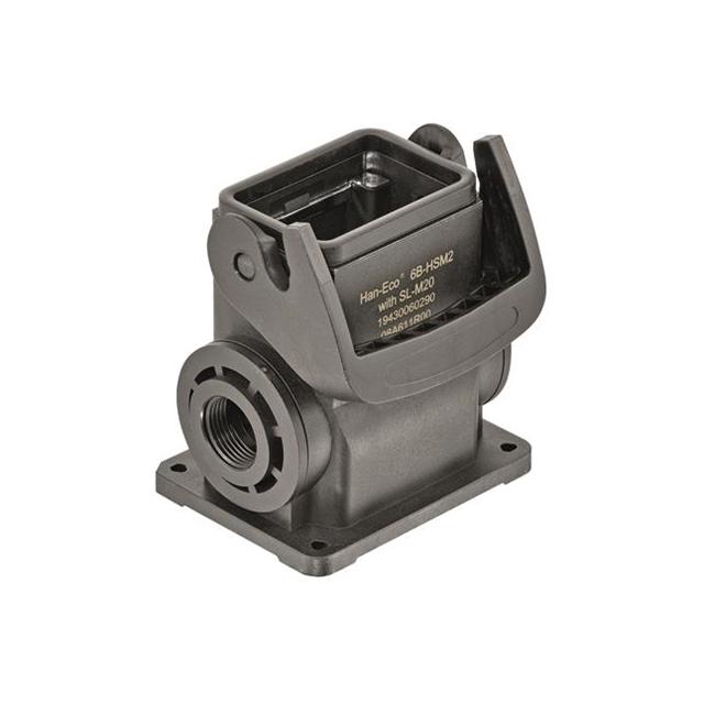 This is manufactured by HARTING. The manufacturer part number is 19430060290. Additionally, the product is designed with side entry Style. It is assigned with possible HTSUS value of 8538.90.8180. The product is rohs3 compliant. It has a typical thread size of m20. The product has -40°c ~ 125°c operating temperature range. Its typical moisture sensitivity level is not applicable. In addition, it is reach unaffected. It has an integral black housing colour. It is shipped in bulk package . base - box mount Connector type offer robust functionality. The product's diameters include 3.307" l x 2.559" w x 3.465" h (84.00mm x 65.00mm x 88.00mm). It has a long 8 weeks standard lead time. The product also features robust polyamide (pa), nylon, glass filled housing material. It is IP rated with ip66 - dust tight, water resistant. The splendid features of the product include feed through. The product han-eco® b, is a highly preferred choice for users. Lock Type & Location Information: locking clip (1) on base bottom. The product is available in 6b size. Moreover, it corresponds to 19430060, a base product number of the product. The product is designated with the ear99 code number.