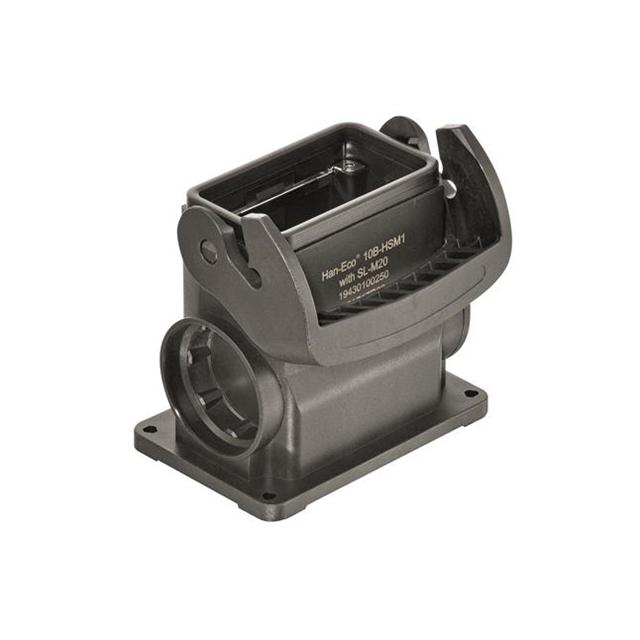 This is manufactured by HARTING. The manufacturer part number is 19430100250. Additionally, the product is designed with side entry Style. It is assigned with possible HTSUS value of 8538.90.8180. The product is rohs3 compliant. It has a typical thread size of m20. The product has -40°c ~ 125°c operating temperature range. Its typical moisture sensitivity level is not applicable. In addition, it is reach unaffected. It has an integral black housing colour. It is shipped in bulk package . base - box mount Connector type offer robust functionality. The product's diameters include 3.819" l x 2.559" w x 3.465" h (97.00mm x 65.00mm x 88.00mm). It has a long 8 weeks standard lead time. The product also features robust polyamide (pa), nylon, glass filled housing material. It is IP rated with ip66 - dust tight, water resistant. The product han-eco® b, is a highly preferred choice for users. Lock Type & Location Information: locking clip (1) on base bottom. The product is available in 10b size. Moreover, it corresponds to 19430100, a base product number of the product. The product is designated with the ear99 code number.