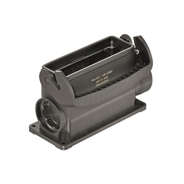 This is manufactured by HARTING. The manufacturer part number is 19430240252. Additionally, the product is designed with side entry Style. It is assigned with possible HTSUS value of 8538.90.8180. The product is rohs3 compliant. It has a typical thread size of m32. The product has -40°c ~ 125°c operating temperature range. Its typical moisture sensitivity level is not applicable. In addition, it is reach unaffected. It has an integral black housing colour. It is shipped in bulk package . base - box mount Connector type offer robust functionality. The product's diameters include 5.669" l x 2.559" w x 3.465" h (144.00mm x 65.00mm x 88.00mm). It has a long 8 weeks standard lead time. The product also features robust polyamide (pa), nylon, glass filled housing material. It is IP rated with ip66 - dust tight, water resistant. The product han-eco® b, is a highly preferred choice for users. Lock Type & Location Information: locking clip (1) on base bottom. The product is available in 24b size. Moreover, it corresponds to 19430240, a base product number of the product. The product is designated with the ear99 code number.