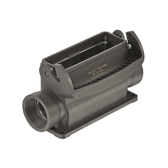 This is manufactured by HARTING. The manufacturer part number is 19430240293. Additionally, the product is designed with side entry Style. It is assigned with possible HTSUS value of 8538.90.8180. The product is rohs3 compliant. It has a typical thread size of m40. The product has -40°c ~ 125°c operating temperature range. Its typical moisture sensitivity level is not applicable. In addition, it is reach unaffected. It has an integral black housing colour. It is shipped in bulk package . base - box mount Connector type offer robust functionality. The product's diameters include 5.669" l x 2.559" w x 3.465" h (144.00mm x 65.00mm x 88.00mm). It has a long 8 weeks standard lead time. The product also features robust polyamide (pa), nylon, glass filled housing material. It is IP rated with ip66 - dust tight, water resistant. The splendid features of the product include feed through. The product han-eco® b, is a highly preferred choice for users. Lock Type & Location Information: locking clip (1) on base bottom. The product is available in 24b size. Moreover, it corresponds to 19430240, a base product number of the product. The product is designated with the ear99 code number.