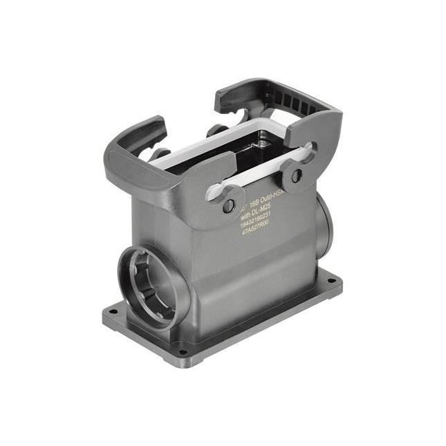 This is manufactured by HARTING. The manufacturer part number is 19432160233. Additionally, the product is designed with side entry Style. It is assigned with possible HTSUS value of 8538.90.8180. The product is rohs3 compliant. It has a typical thread size of m40. The product has -40°c ~ 125°c operating temperature range. Its typical moisture sensitivity level is not applicable. In addition, it is reach unaffected. It has an integral black housing colour. It is shipped in bulk package . base - box mount Connector type offer robust functionality. The product's diameters include 4.646" l x 2.559" w x 3.465" h (118.00mm x 65.00mm x 88.00mm). It has a long 8 weeks standard lead time. The product also features robust polyamide (pa), nylon, glass filled housing material. It is IP rated with ip66 - dust tight, water resistant. The product han-eco® b, is a highly preferred choice for users. Lock Type & Location Information: locking clip (2) on base bottom. The product is available in 16b size. Moreover, it corresponds to 19432160, a base product number of the product. The product is designated with the ear99 code number.