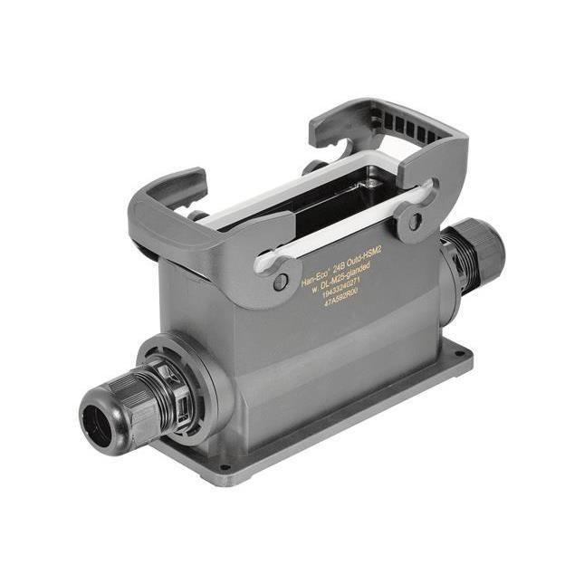 This is manufactured by HARTING. The manufacturer part number is 19433240271. Additionally, the product is designed with side entry Style. It is assigned with possible HTSUS value of 8538.90.8180. The product is rohs3 compliant. It has a typical thread size of m25. The product has -40°c ~ 125°c operating temperature range. Its typical moisture sensitivity level is not applicable. In addition, it is reach unaffected. It has an integral black housing colour. It is shipped in bulk package . base - box mount Connector type offer robust functionality. The product's diameters include 5.669" l x 2.559" w x 3.465" h (144.00mm x 65.00mm x 88.00mm). It has a long 8 weeks standard lead time. The product also features robust polyamide (pa), nylon, glass filled housing material. It is IP rated with ip66 - dust tight, water resistant. The splendid features of the product include feed through. The product han-eco® b, is a highly preferred choice for users. Lock Type & Location Information: locking clip (2) on base bottom. The product is available in 24b size. Moreover, it corresponds to 19433240, a base product number of the product. The product is designated with the ear99 code number.