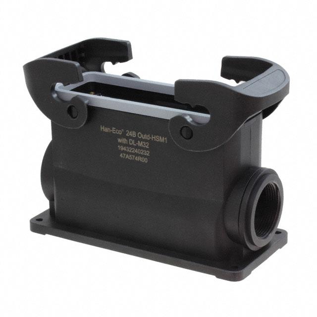 This is manufactured by HARTING. The manufacturer part number is 19432240232. Additionally, the product is designed with side entry Style. It is assigned with possible HTSUS value of 8538.90.8180. The product is rohs3 compliant. It has a typical thread size of m32. The product has -40°c ~ 125°c operating temperature range. Its typical moisture sensitivity level is 1 (unlimited). In addition, it is reach unaffected. It has an integral black housing colour. The harting's product offers user-desired applications. base - box mount Connector type offer robust functionality. The product's diameters include 5.669" l x 2.559" w x 3.465" h (144.00mm x 65.00mm x 88.00mm). It has a long 8 weeks standard lead time. The product also features robust polyamide (pa), nylon, glass filled housing material. It is IP rated with ip66 - dust tight, water resistant. The product han-eco® b, is a highly preferred choice for users. Lock Type & Location Information: locking clip (2) on base bottom. In addition, bulk is the available packaging type of the product. The product is available in 24b size. Moreover, it corresponds to 19432240, a base product number of the product. The product is designated with the ear99 code number.
