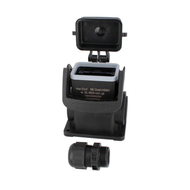This is manufactured by HARTING. The manufacturer part number is 19433060256. Additionally, the product is designed with side entry Style. It is assigned with possible HTSUS value of 8538.90.8180. The product is rohs3 compliant. It has a typical thread size of m25. The product has -40°c ~ 125°c operating temperature range. Its typical moisture sensitivity level is 1 (unlimited). In addition, it is reach unaffected. It has an integral black housing colour. The harting's product offers user-desired applications. base - box mount Connector type offer robust functionality. The product's diameters include 3.307" l x 2.559" w x 3.465" h (84.00mm x 65.00mm x 88.00mm). It has a long 11 weeks standard lead time. The product also features robust polyamide (pa), nylon, glass filled housing material. It is IP rated with ip66 - dust tight, water resistant. The splendid features of the product include cover. The product han-eco® b, is a highly preferred choice for users. Lock Type & Location Information: locking clip (1) on base bottom. In addition, bulk is the available packaging type of the product. The product is available in 6b size. Moreover, it corresponds to 19433060, a base product number of the product. The product is designated with the ear99 code number.