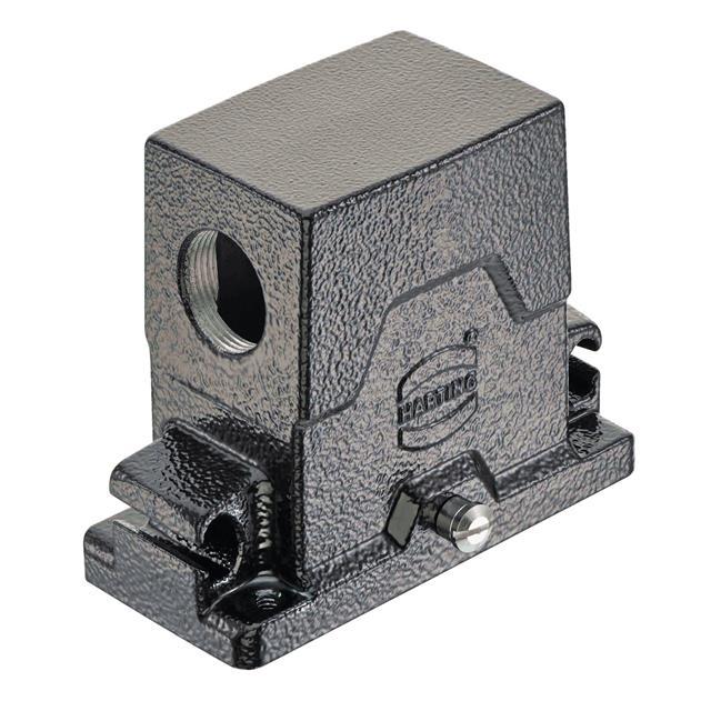 This is manufactured by HARTING. The manufacturer part number is 19405100581. Additionally, the product is designed with side entry Style. It is assigned with possible HTSUS value of 8538.90.8180. The product is rohs3 compliant. It has a typical thread size of m25. The product has -40°c ~ 125°c operating temperature range. Its typical moisture sensitivity level is 1 (unlimited). The product's housing has finished with a rugged powder coated. It has an integral black housing colour. It is shipped in bulk package . hood Connector type offer robust functionality. It has a long 11 weeks standard lead time. The product also features robust aluminum, die cast housing material. It is IP rated with ip65/ip68/ip6k9k - dust tight, water resistant, waterproof. The product han® hpr, is a highly preferred choice for users. Lock Type & Location Information: locking clip (1) on base bottom. The product is available in 10hpr size. The product is designated with the ear99 code number.