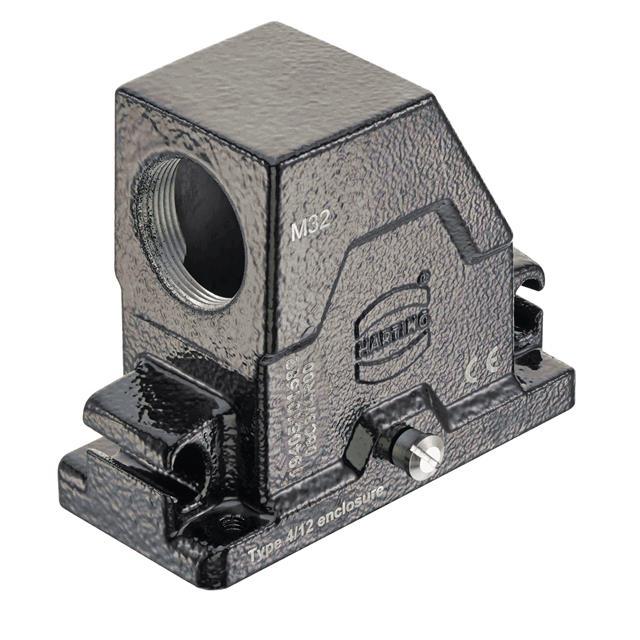 This is manufactured by HARTING. The manufacturer part number is 19405101582. Additionally, the product is designed with side entry Style. It is assigned with possible HTSUS value of 8538.90.8180. The product is rohs3 compliant. It has a typical thread size of m32. The product has -40°c ~ 125°c operating temperature range. Its typical moisture sensitivity level is 1 (unlimited). The product's housing has finished with a rugged powder coated. It has an integral black housing colour. It is shipped in bulk package . hood Connector type offer robust functionality. It has a long 11 weeks standard lead time. The product also features robust aluminum, die cast housing material. It is IP rated with ip65/ip68/ip6k9k - dust tight, water resistant, waterproof. The product han® hpr, is a highly preferred choice for users. Lock Type & Location Information: locking clip (1) on base bottom. The product is available in 10hpr size. The product is designated with the ear99 code number.