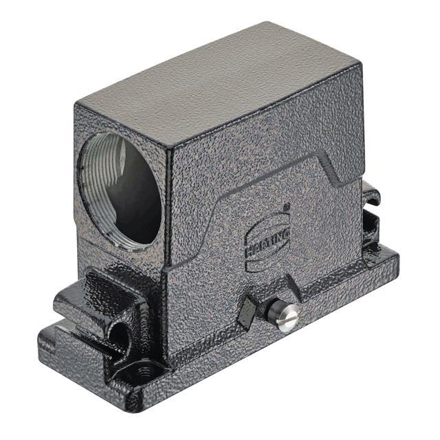 This is manufactured by HARTING. The manufacturer part number is 19405160583. Additionally, the product is designed with side entry Style. It is assigned with possible HTSUS value of 8538.90.8180. The product is rohs3 compliant. It has a typical thread size of m40. The product has -40°c ~ 125°c operating temperature range. Its typical moisture sensitivity level is 1 (unlimited). The product's housing has finished with a rugged powder coated. It has an integral black housing colour. It is shipped in bulk package . hood Connector type offer robust functionality. It has a long 11 weeks standard lead time. The product also features robust aluminum, die cast housing material. It is IP rated with ip65/ip68/ip69k - dust tight, water resistant, waterproof. The product han® hpr, is a highly preferred choice for users. Lock Type & Location Information: locking clip (1) on base bottom. The product is available in 16hpr size. The product is designated with the ear99 code number.