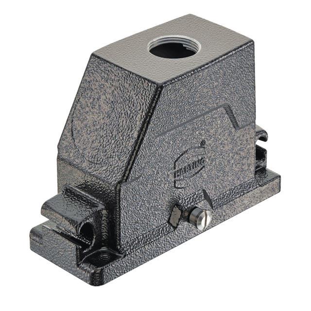 This is manufactured by HARTING. The manufacturer part number is 19405161481. Additionally, the product is designed with top entry Style. It is assigned with possible HTSUS value of 8538.90.8180. The product is rohs3 compliant. It has a typical thread size of m25. The product has -40°c ~ 125°c operating temperature range. Its typical moisture sensitivity level is 1 (unlimited). The product's housing has finished with a rugged powder coated. It has an integral black housing colour. It is shipped in bulk package . hood Connector type offer robust functionality. It has a long 11 weeks standard lead time. The product also features robust aluminum, die cast housing material. It is IP rated with ip65/ip68/ip6k9k - dust tight, water resistant, waterproof. The product han® hpr, is a highly preferred choice for users. Lock Type & Location Information: locking clip (1) on base bottom. The product is available in 16hpr size. The product is designated with the ear99 code number.