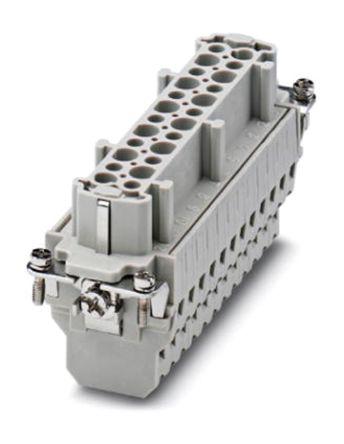 This is manufactured by Phoenix Contact. The manufacturer part number is 1647420. The product has a current rating of 16a. While the pole has 24p+e format. Moreover, the product has a nominal 500 v voltage rating. In addition, female is the available "Gender" of the product. It is a type of contact insert accessory. The product heavycon b24, is a highly preferred choice for users. It has 3d cad model CAD drawing . It is assigned with possible HTSUS value of 8538.90.8180. The product is rohs compliant. Moreover, it has tension clamp terminal style. The product also features robust polycarbonate (pc) housing material. The product has -40°c ~ 125°c operating temperature range. The product carries possible position value of 24+ground. Moreover, the product has a nominal 500v voltage rating. It carries ul94 v-0 of material flammability rating. It is shipped in bulk package . insert Connector type offer robust functionality. Furthermore, the product is galvanized with excellent silver contact finishing. Its typical moisture sensitivity level is 1 (unlimited). The product is available in b24 size. Additionally, the product's output is 16a. The product heavycon® b24, is a highly preferred choice for users. The product is designated with the ear99 code number. The product is made from sturdy copper alloy materials.