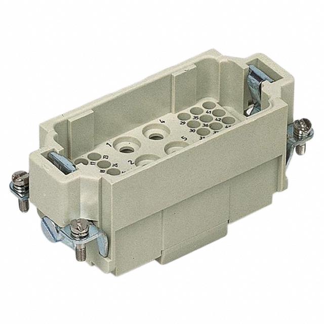 This is manufactured by HARTING. The manufacturer part number is 09380423001. The product has a current rating of 10 a, 40 a. It is IP rated with ip65. In addition, male is the available "Gender" of the product. It has straight body orientation. Moreover, the product has a nominal 160 v, 690 v voltage rating. The product han k, is a highly preferred choice for users. The product contains 43 contacts. It comes in connector insert configuration. It is assigned with possible HTSUS value of 8536.69.8000. The product is rohs3 compliant. Moreover, it has crimp terminal style. The product also features robust polycarbonate (pc) housing material. The product has -40°c ~ 125°c operating temperature range. The product carries possible position value of 6+36+ground. In addition, it is reach unaffected. It carries ul94 v-0 of material flammability rating. The harting's product offers user-desired applications. insert without contacts Connector type offer robust functionality. Its typical moisture sensitivity level is 1 (unlimited). It has typical contact type of han® c, han® d. The product is available in 16b size. It has a long 8 weeks standard lead time. It has a classic gray colour. The product han-com®, is a highly preferred choice for users. In addition, bulk is the available packaging type of the product. Moreover, it corresponds to 09380423, a base product number of the product. The product is designated with the ear99 code number.