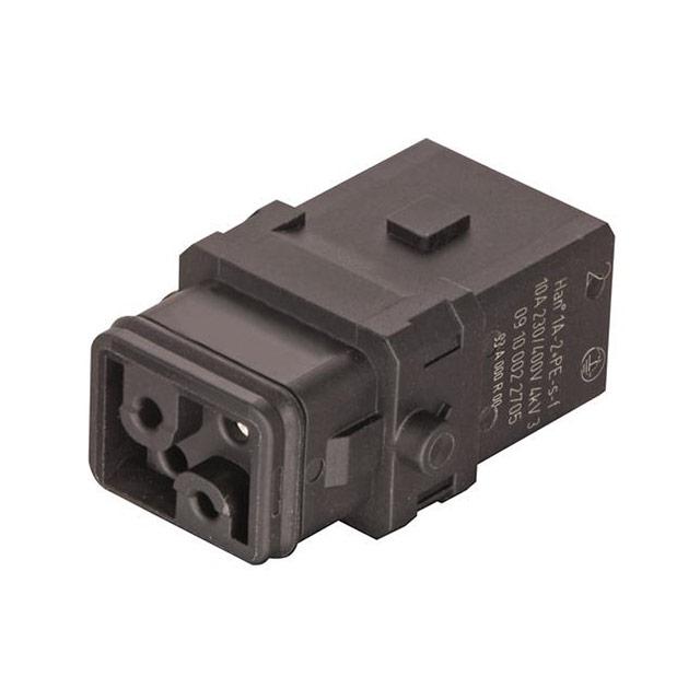 This is Han 1A-2+PE-S-f manufactured by HARTING. The manufacturer part number is 09100022705. The product has a current rating of 10a. It is IP rated with ip20, ip65. In addition, female is the available "Gender" of the product. Moreover, the product has a nominal 230 v, 400 v voltage rating. While the pole has 2p+e format. It allows screw termination method. It features han range. It comes in 2 of rows. The high-quality silver plated is used as contact plating material. The product han 1a, is a highly preferred choice for users. The product contains 2 contacts. It comes in connector insert configuration. The product is made from sturdy copper alloy materials. It is assigned with possible HTSUS value of 8536.69.8000. The product is rohs3 compliant. Moreover, it has screw terminal style. The product also features robust polyamide (pa), nylon housing material. The product has -30°c ~ 90°c operating temperature range. The product carries possible position value of 2+ground. In addition, it is reach unaffected. It carries ul94 v-0 of material flammability rating. The harting's product offers user-desired applications. Moreover, the product has a nominal 400v voltage rating. insert Connector type offer robust functionality. Furthermore, the product is galvanized with excellent silver contact finishing. Its typical moisture sensitivity level is not applicable. The product is available in 1a size. Additionally, the product's output is 10a. It has a classic black colour. The product han® 1a, is a highly preferred choice for users. In addition, bulk is the available packaging type of the product. The product is designated with the ear99 code number. Moreover, it corresponds to 09100022, a base product number of the product.