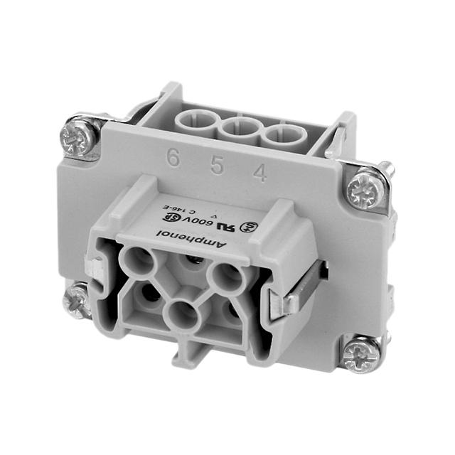 This is manufactured by Amphenol Tuchel Industrial. The manufacturer part number is C14610B0061021. It is assigned with possible HTSUS value of 8536.69.8000. The product is rohs3 compliant. Moreover, it has screw terminal style. The product also features robust polycarbonate (pc), glass filled housing material. The product has -40°c ~ 125°c operating temperature range. The product carries possible position value of 6+ground. Moreover, the product has a nominal 600v voltage rating. In addition, it is reach unaffected. It carries ul94 v-0 of material flammability rating. It is shipped in bulk package . In addition, female is the available "Gender" of the product. insert Connector type offer robust functionality. Furthermore, the product is galvanized with excellent silver contact finishing. Its typical moisture sensitivity level is 1 (unlimited). The product is available in e6 size. It has a long 30 weeks standard lead time. Additionally, the product's output is 10a. It has a classic gray colour. The product heavymate®, is a highly preferred choice for users. The product is designated with the ear99 code number. Moreover, it corresponds to c14610b006, a base product number of the product. The product is made from sturdy brass materials.