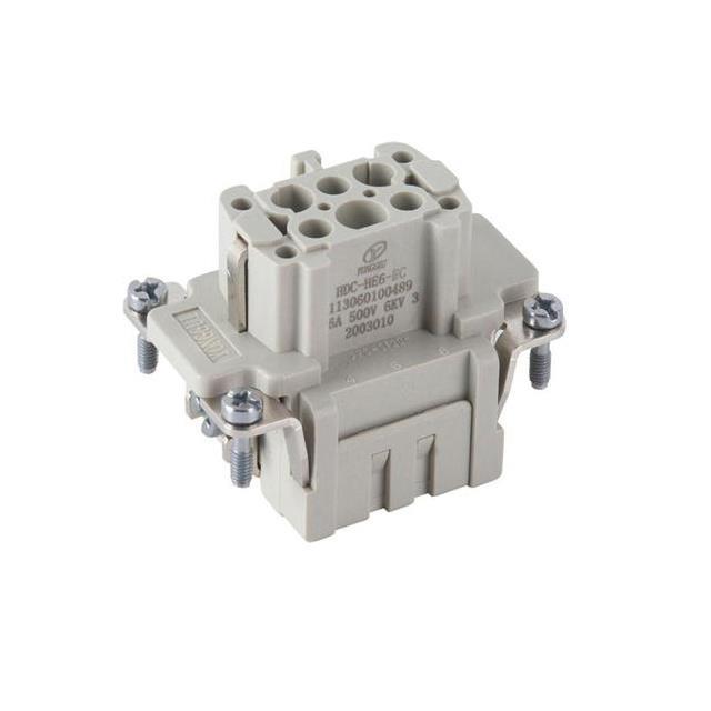 This is manufactured by Yonggui Electric. The manufacturer part number is 113060200489. It is assigned with possible HTSUS value of 8538.90.8180. Moreover, it has crimp terminal style. The product also features robust polycarbonate (pc) housing material. The product has -40°c ~ 125°c operating temperature range. The product carries possible position value of 6+ground. The yonggui electric's product offers user-desired applications. Moreover, the product has a nominal 500v voltage rating. In addition, female is the available "Gender" of the product. insert without contacts Connector type offer robust functionality. Additionally, the product's output is 16a. It has a classic gray colour. In addition, bulk is the available packaging type of the product. The product is available in 6b size. The product is designated with the ear99 code number.