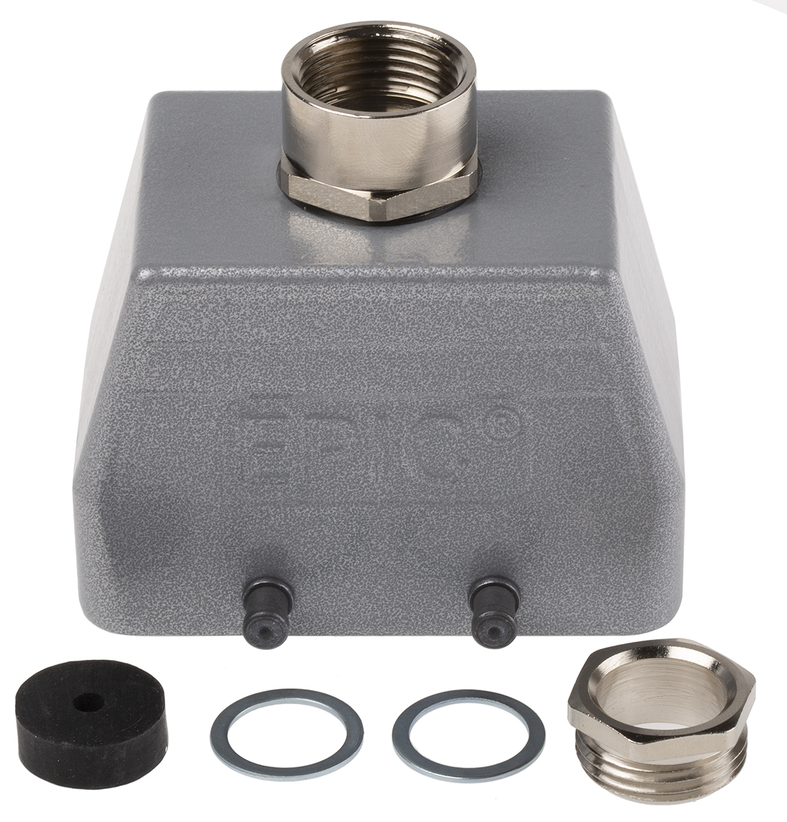 This is H-BE Series Top Entry Connector Hood Female Male 10 Way manufactured by Epic Contact. The manufacturer part number is 19040000+71201200. It is IP rated with ip65. In addition, female, male is the available "Gender" of the product. It has top entry body orientation. While the pole has 10p+e format. It has a typical thread size of m20. The product h-be, is a highly preferred choice for users. The product contains 10 contacts. It comes in connector hood configuration.