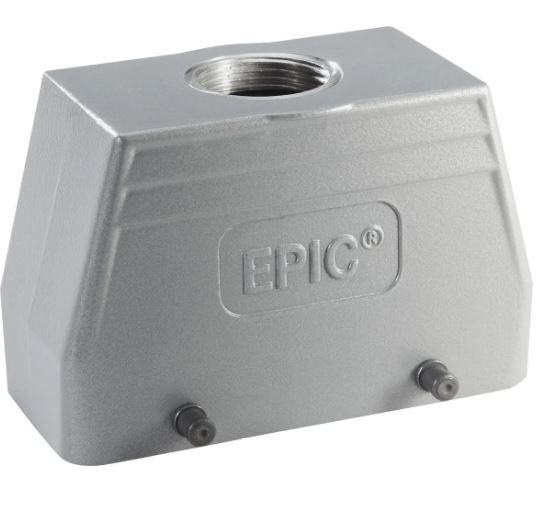 This is H-BE Series Top Entry Connector Hood Female Male 16 Way manufactured by Epic Contact. The manufacturer part number is 19080000+71201300. The product is made from sturdy brass (cuzn) materials. Its cable entry is from top angle . It is IP rated with ip65. The product contains 16 contacts. In addition, female, male is the available "Gender" of the product. It has top entry body orientation. It allows screw termination method. While the pole has 16p+e format. It has a typical thread size of m25. The product h-be, is a highly preferred choice for users. It includes double lever levers . It carries [Serial Number] serial number. It comes in connector hood configuration. The product is available in 16b size.