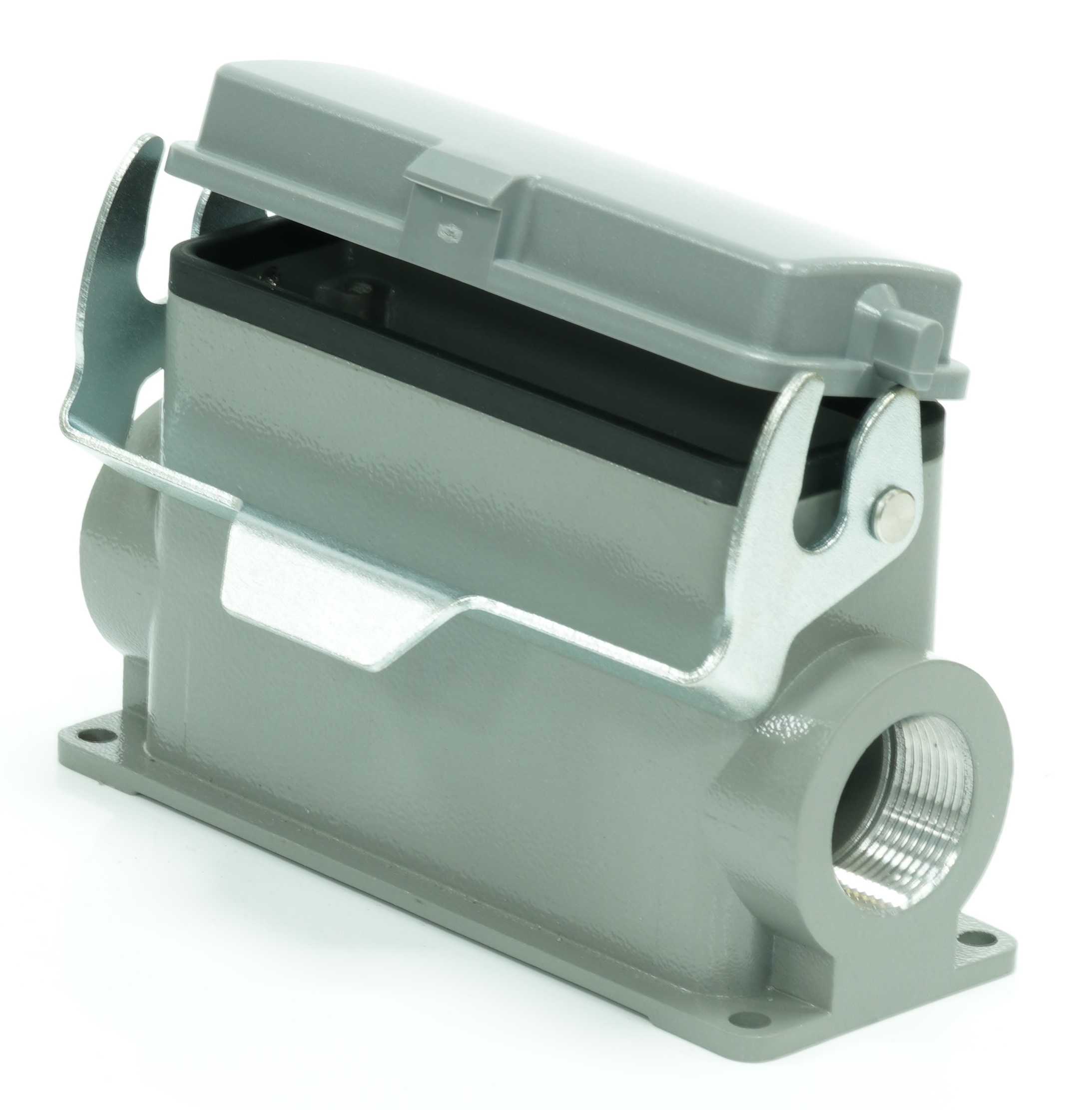 This is Side Entry Heavy Duty Power Connector Housing Surface Mount manufactured by RS PRO. The manufacturer part number is 208-4030. Its cable entry is from side angle . The product is available in surface mount configuration. It is IP rated with ip65. The product rs-h24b, is a highly preferred choice for users. It has side entry body orientation. It has a typical thread size of pg21. The product is highly suitable for rs pro heavy duty inserts and pg or m style cable glands. It includes 1 levers . It comes in connector housing configuration.
