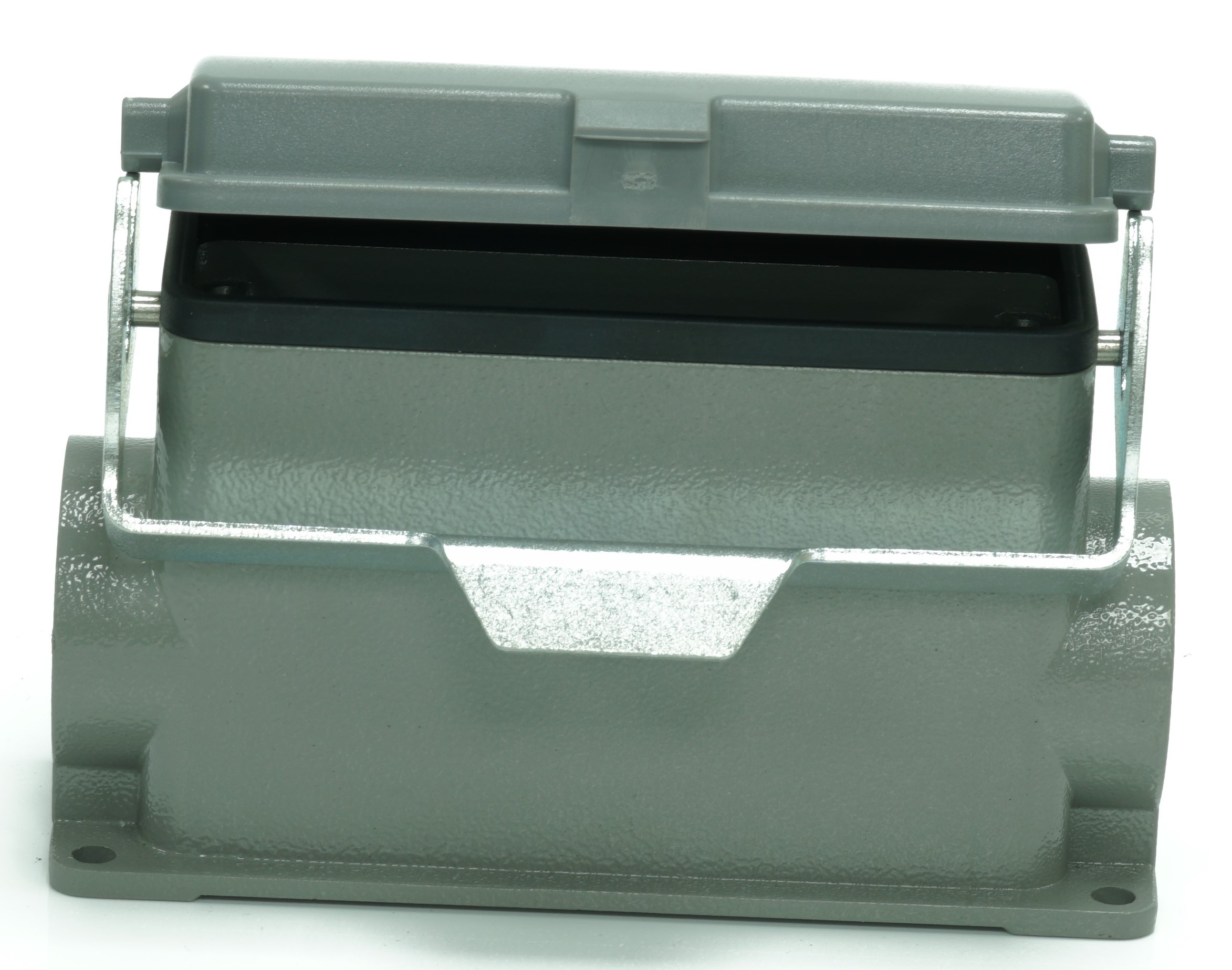 This is Side Entry Heavy Duty Power Connector Housing Surface Mount manufactured by RS PRO. The manufacturer part number is 208-4033. Its cable entry is from side angle . The product is available in surface mount configuration. It is IP rated with ip65. The product rs-h24b, is a highly preferred choice for users. It has side entry body orientation. It has a typical thread size of pg21. Whereas, the rs-h24b is the manufacture's size code. The product is highly suitable for rs pro heavy duty inserts and pg or m style cable glands. It includes 1 levers . It comes in connector housing configuration.