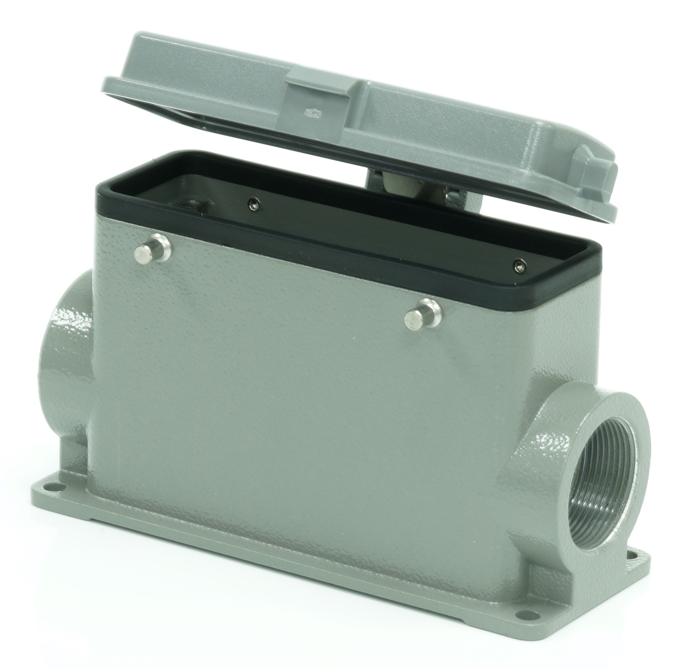 This is Side Entry Heavy Duty Power Connector Housing Surface Mount manufactured by RS PRO. The manufacturer part number is 208-4054. Its cable entry is from side angle . The product is available in surface mount configuration. It is IP rated with ip65. The product rs-h24b, is a highly preferred choice for users. It has side entry body orientation. It has a typical thread size of m32. The product is highly suitable for rs pro heavy duty inserts and pg or m style cable glands. It includes 4 levers . It comes in connector housing configuration.