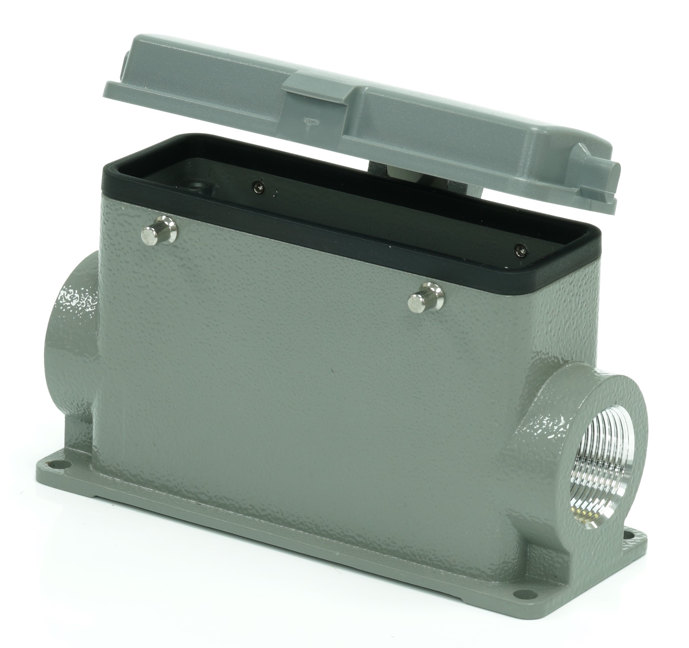 This is Side Entry Heavy Duty Power Connector Housing Surface Mount manufactured by RS PRO. The manufacturer part number is 208-4055. Its cable entry is from side angle . The product is available in surface mount configuration. It is IP rated with ip65. The product rs-h24b, is a highly preferred choice for users. It has side entry body orientation. It has a typical thread size of pg21. Whereas, the rs-h24b is the manufacture's size code. The product is highly suitable for rs pro heavy duty inserts and pg or m style cable glands. It includes 4 levers . It comes in connector housing configuration.
