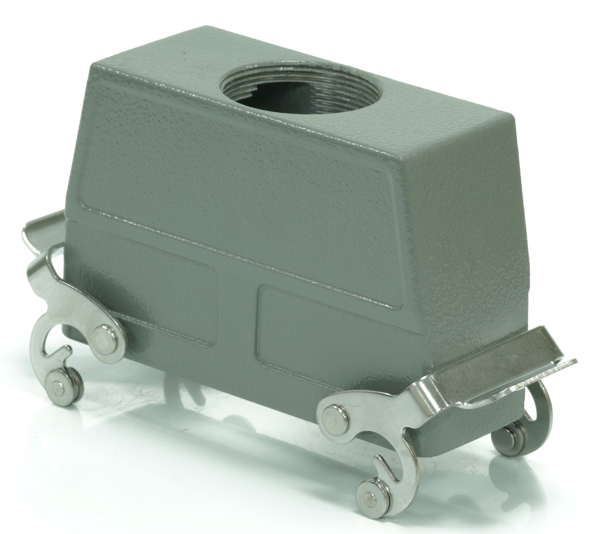 This is Top Entry Heavy Duty Power Connector Housing Top Mount manufactured by RS PRO. The manufacturer part number is 208-4079. Its cable entry is from top angle . The product is available in top mount configuration. It is IP rated with ip65. The product rs-h24b, is a highly preferred choice for users. It has top entry body orientation. It has a typical thread size of m40. The product is highly suitable for rs pro heavy duty inserts and pg or m style cable glands. It includes 2 levers . It comes in connector hood configuration.