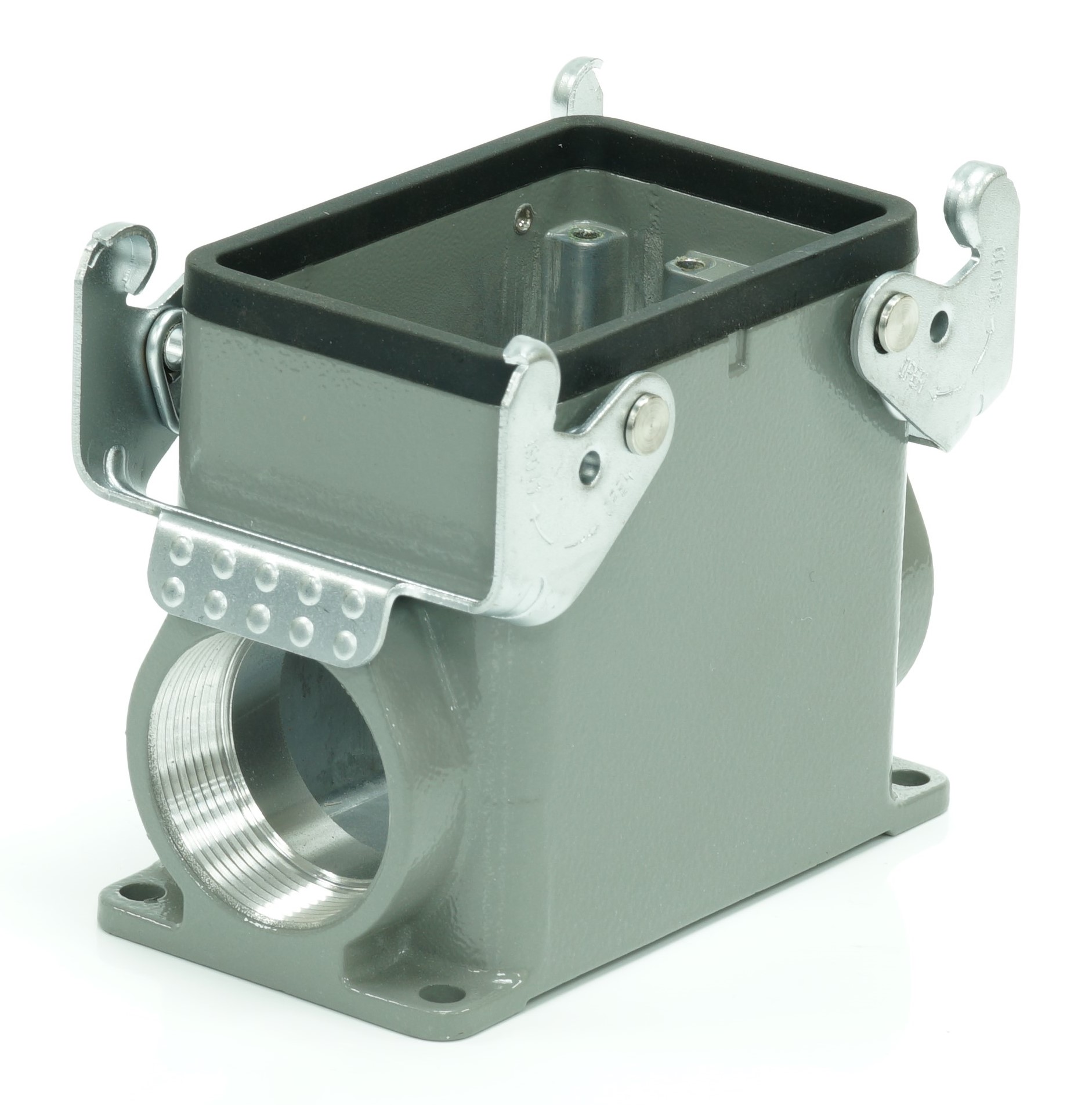 This is Side Entry Heavy Duty Power Connector Housing Surface Mount manufactured by RS PRO. The manufacturer part number is 208-4123. Its cable entry is from side angle . The product is available in surface mount configuration. It is IP rated with ip65. The product rs-h32a, is a highly preferred choice for users. It has side entry body orientation. It has a typical thread size of pg29. The product is highly suitable for rs pro heavy duty inserts and pg or m style cable glands. It includes 2 levers . It comes in connector housing configuration.
