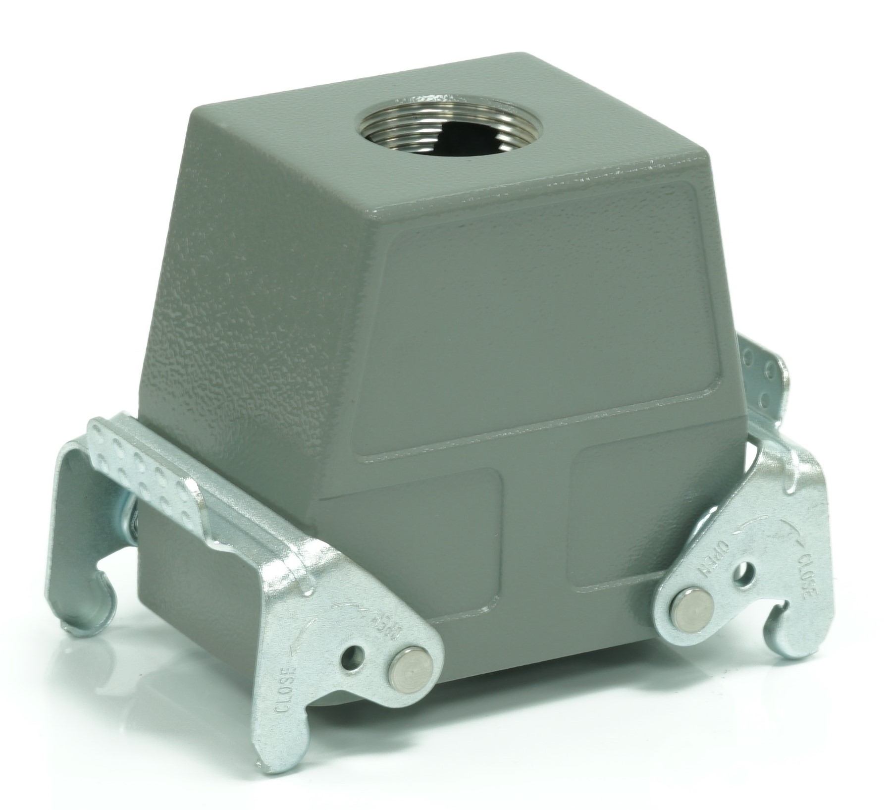 This is Top Entry Heavy Duty Power Connector Housing Top Mount manufactured by RS PRO. The manufacturer part number is 208-4141. Its cable entry is from top angle . The product is available in top mount configuration. It is IP rated with ip65. The product rs-h32a, is a highly preferred choice for users. It has top entry body orientation. It has a typical thread size of pg21. The product is highly suitable for rs pro heavy duty inserts and pg or m style cable glands. It includes 2 levers . It comes in connector hood configuration.