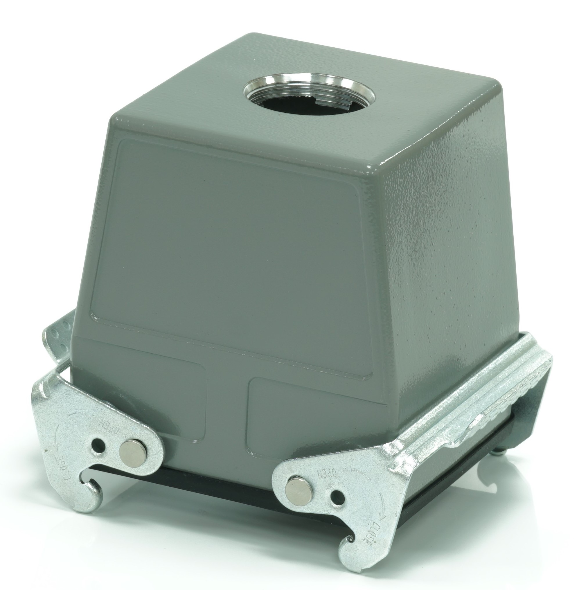 This is Top Entry Heavy Duty Power Connector Housing Cable manufactured by RS PRO. The manufacturer part number is 208-4152. Its cable entry is from top angle . The product is available in cable configuration. It is IP rated with ip65. The product rs-h32b, is a highly preferred choice for users. It has top entry body orientation. It has a typical thread size of m32. The product is highly suitable for rs pro heavy duty inserts and pg or m style cable glands. It includes 2 levers . It comes in cable to cable housing configuration.