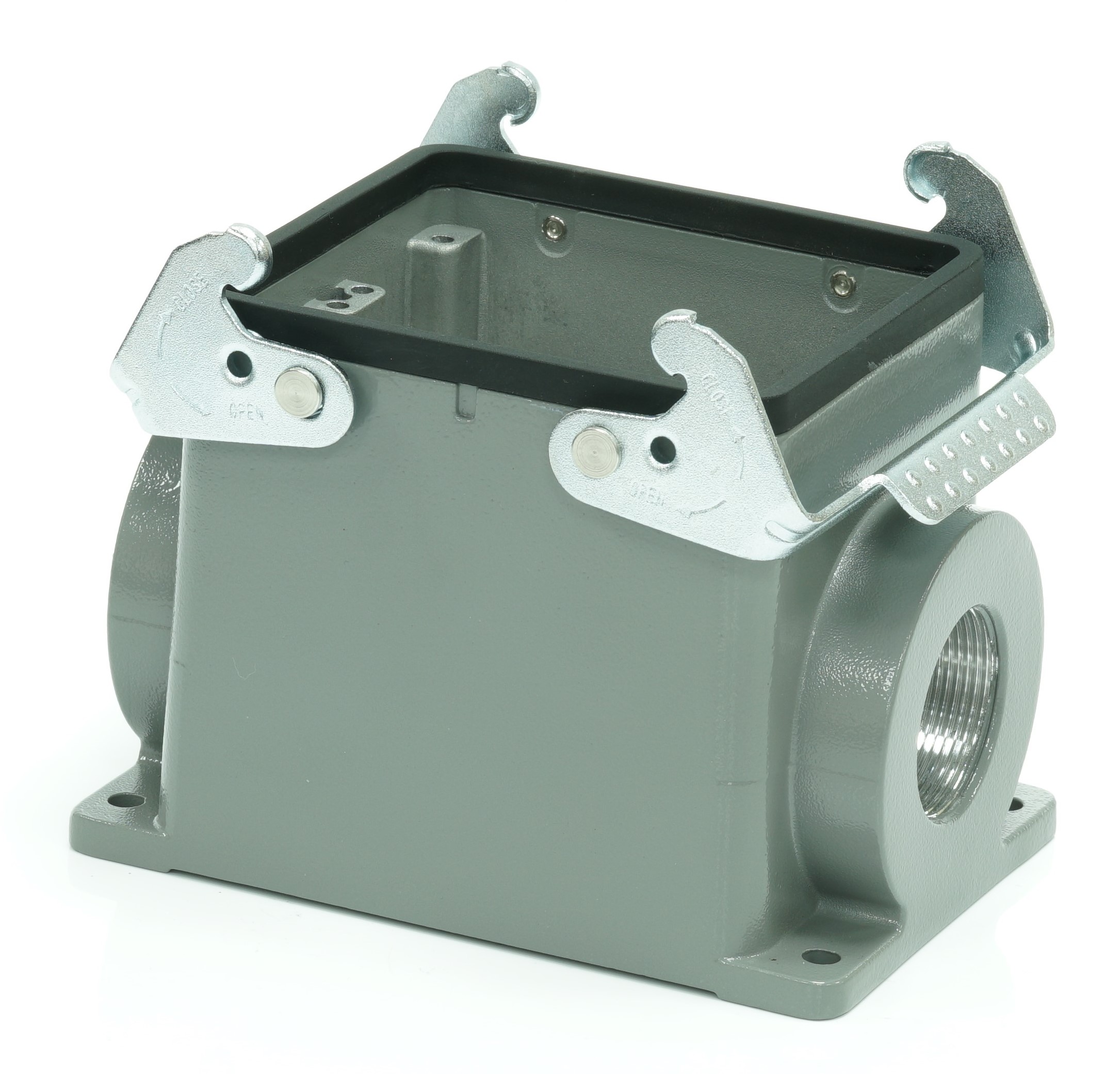 This is Side Entry Heavy Duty Power Connector Housing Surface Mount manufactured by RS PRO. The manufacturer part number is 208-4185. Its cable entry is from side angle . The product is available in surface mount configuration. It is IP rated with ip65. The product rs-h32b, is a highly preferred choice for users. It has side entry body orientation. It has a typical thread size of m32. Whereas, the rs-h32b is the manufacture's size code. The product is highly suitable for rs pro heavy duty inserts and pg or m style cable glands. It includes 2 levers . It comes in connector housing configuration.